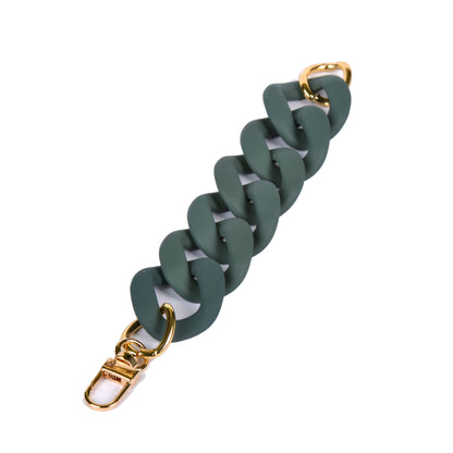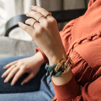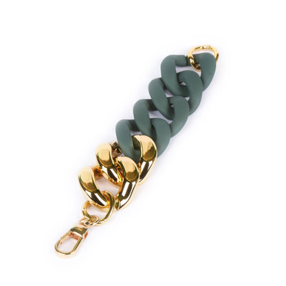Made with exceptional craftsmanship in France, our Large Acrylic Link Bracelet in Olive Green and Gold is a must-have accessory for any ensemble.