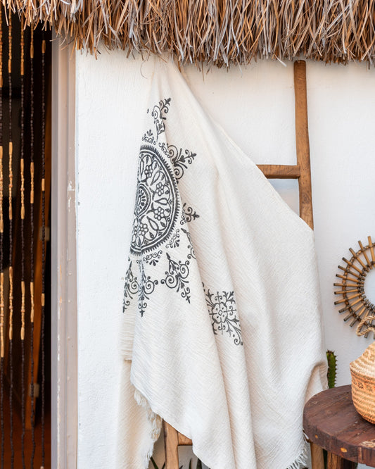 ValentElle’s OEKO-TEX certified muslin kimonos, linen cover-ups, and artisan towels — all hand-printed and paired with matching totes and clutches.